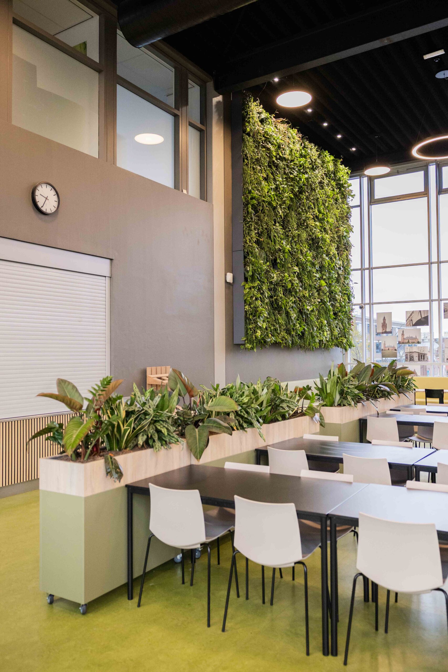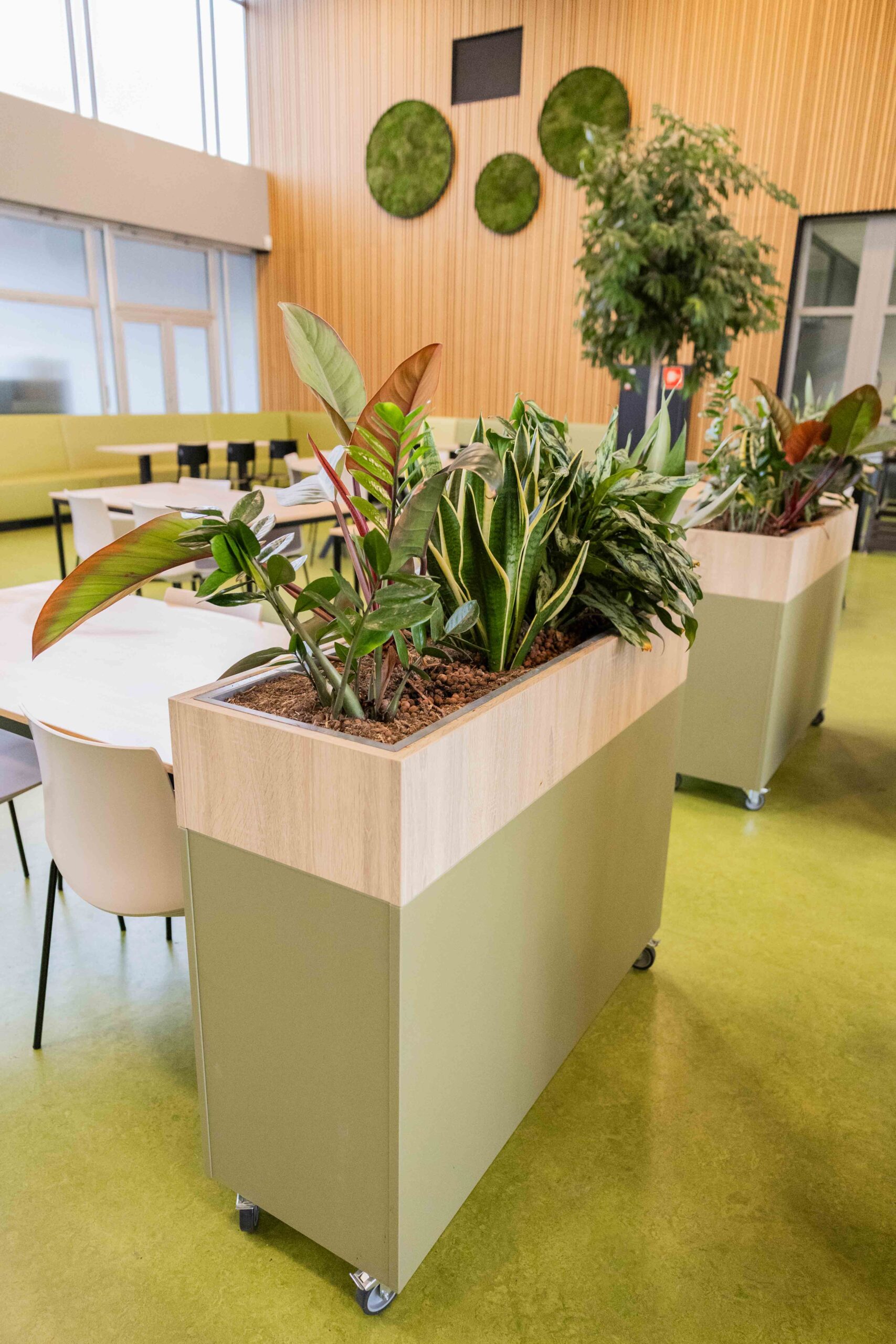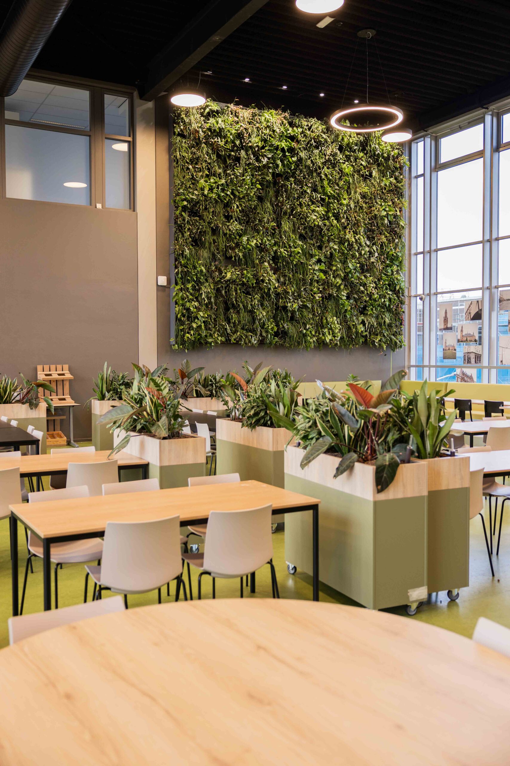 Bij de Johan de Witt scholengroep hebben we 6 vestigingen mogen voorzien van innovatieve groenoplossingen. Denk hierbij aan plantenmuren, hangende tuinen, moswanden, interieurbeplanting en binnentuinen. Deze groene oplossingen dragen niet alleen bij aan een betere luchtvochtigheid, maar ook aan een verbeterde akoestiek. Het resultaat is een gezonde en productieve leeromgeving voor zowel leerlingen als medewerkers.