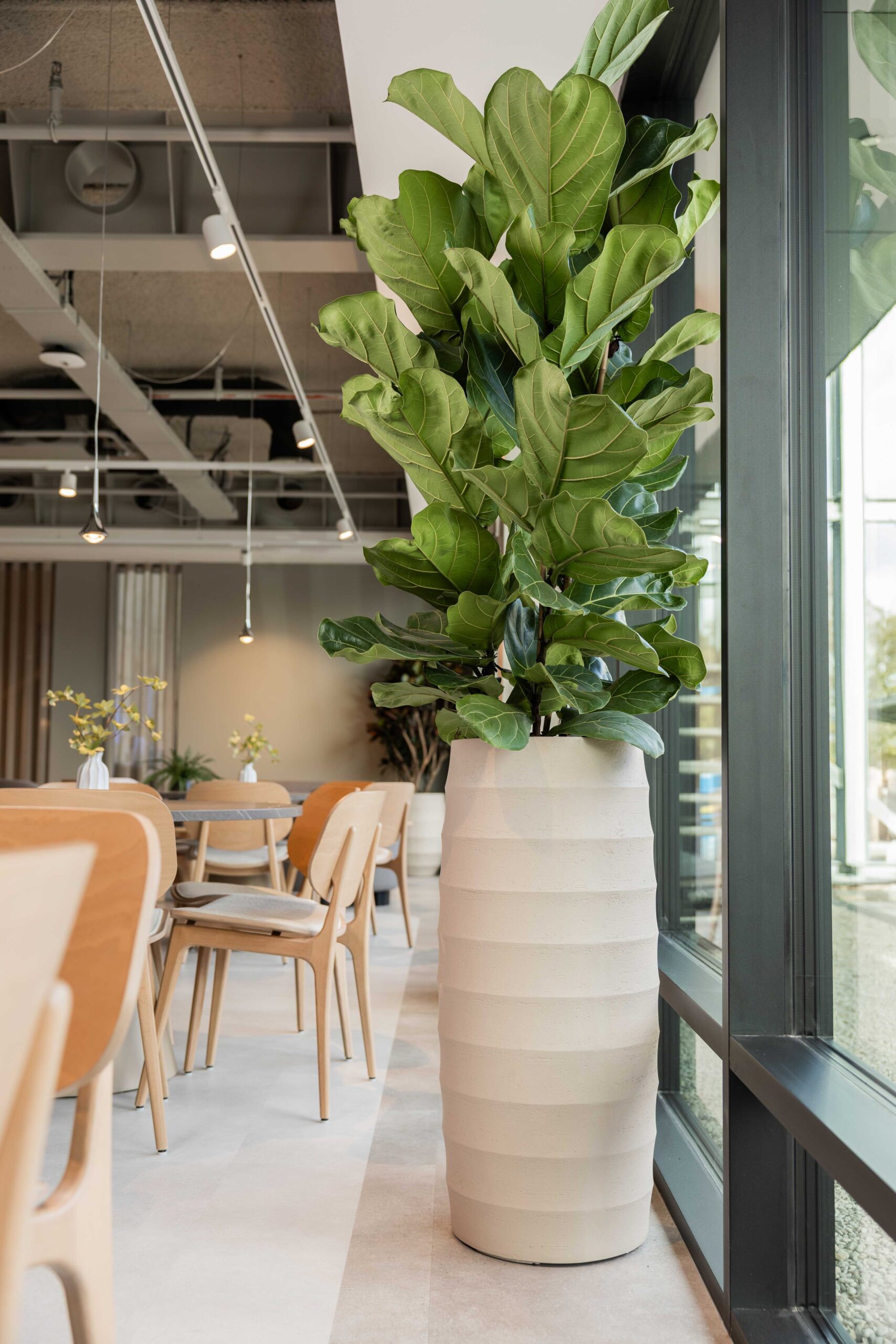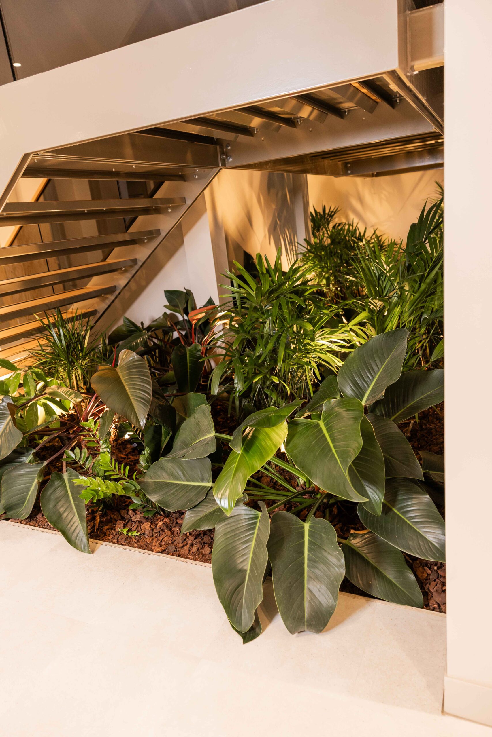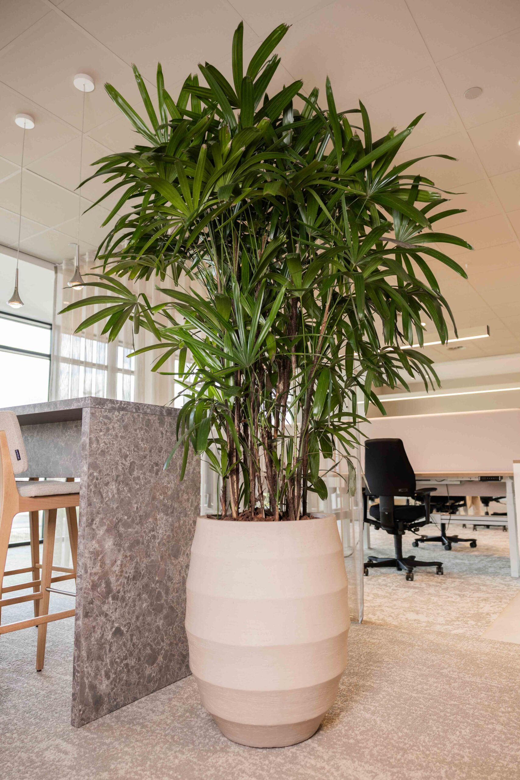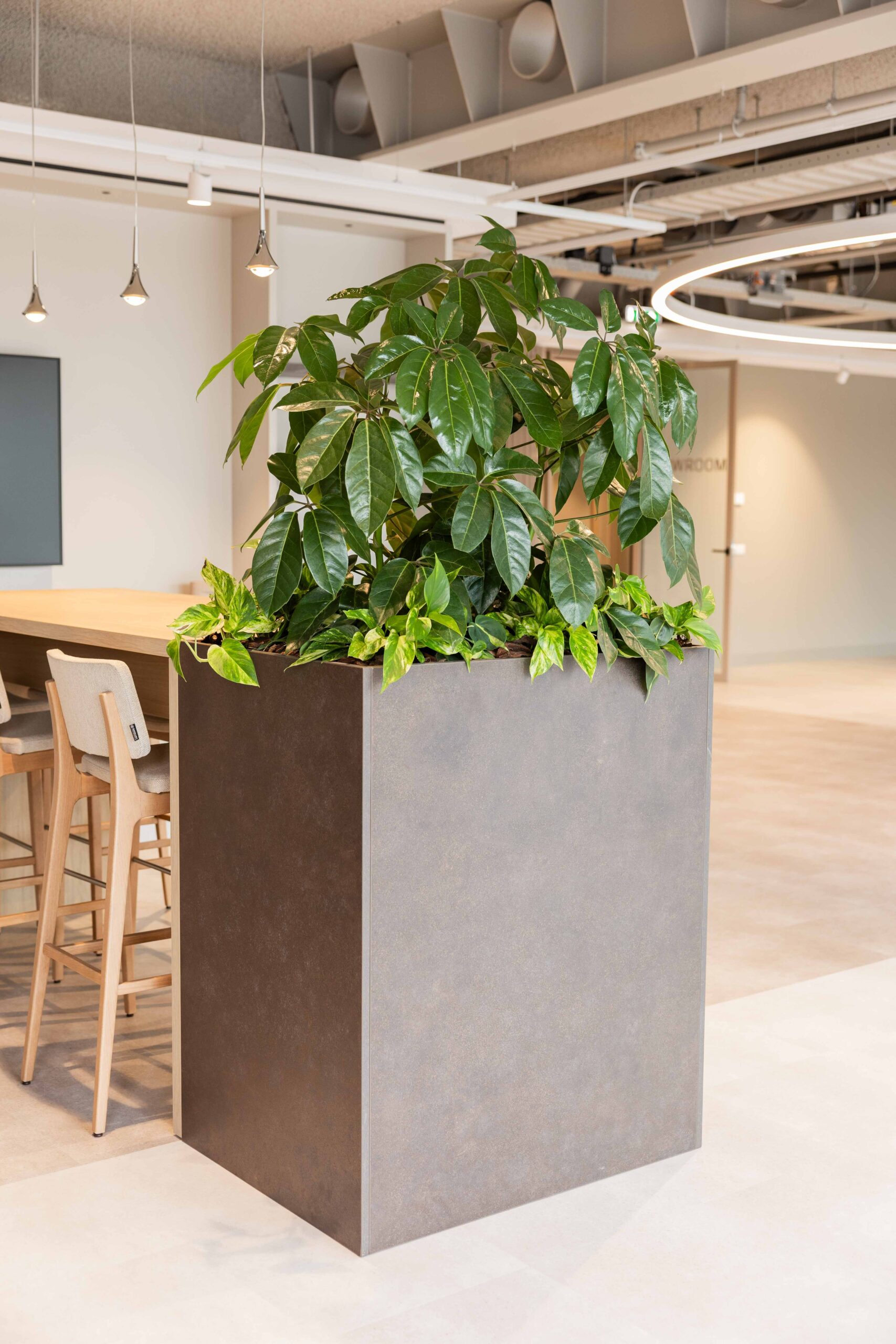 Vanaf het eerste ontwerp dachten we mee over licht, routing en gebruik. Daardoor staat elke plant op de juiste plek en blijft het geheel in balans. Het onderhoud nemen we ook uit handen: zo blijft het pand er altijd fris en verzorgd uitzien.